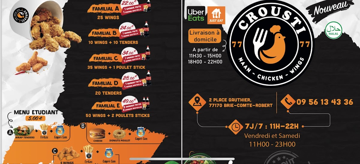 Whether you’re looking for a quick bite after exploring the town or a satisfying meal during your weekly routine, Crousti 77 is a destination worth repeating. With affordable prices and a menu bursting with flavor, it's no surprise that many locals find themselves returning “au moins 1 fois par semaine voir 2.”